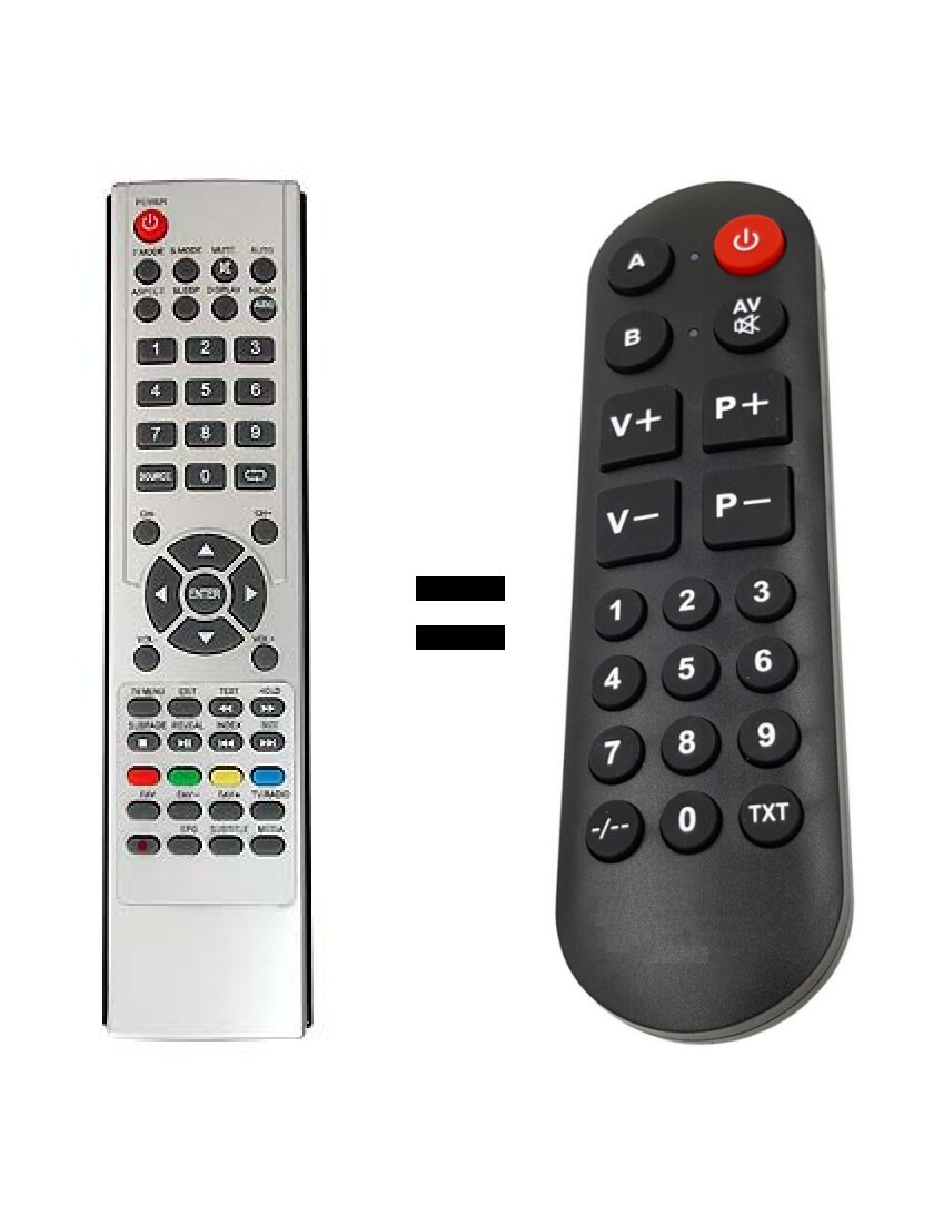 Idealny pilot dla seniorów, dzieci i każdego, kto szuka łatwego i prostego pilota. Pilot przyjdzie do Ciebie już zaprogramowany dla Twojego modelu. Wystarczy włożyć baterie i działa Można sterować tylko podstawowymi funkcjami: Wł., Wył., Głośność, Programy, Wejścia, OK i Exit. Na życzenie możemy zaprogramować włączanie i wyłączanie innego urządzenia (Proszę podać model w uwadze w zamówieniu.) Np. jeśli kupisz pilota do DVB-T, zaprogramujemy  przycisk TXT do włączania telewizora . Przycisk TXT na naszym  pilocie będzie działał jako POWER/OF TV.