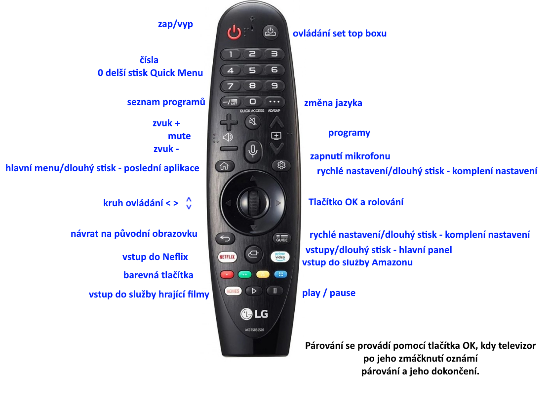 Český návod pro dálkový ovladač Lg AN-MR19BA  náhradní dálkový ovladač stejný jako originál Magic, Smart