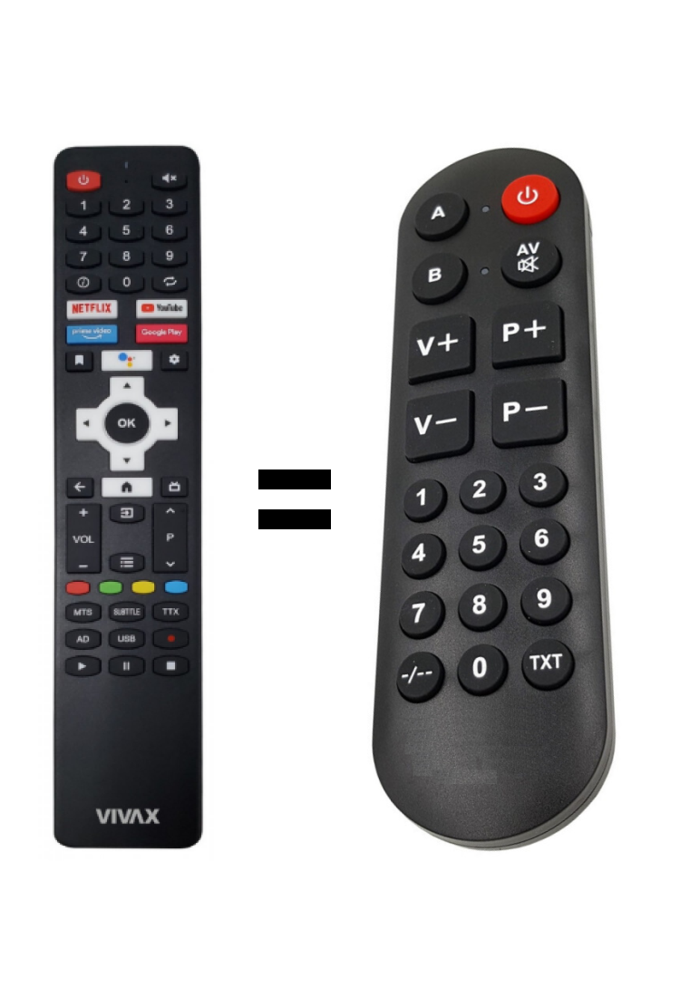TYLKO PODSTAWOWE FUNKCJE. Zamienny pilot Vivax bez mikrofonu. BEZ WPISYWANIA KODÓW. Na przykład do modeli 40LE20K, serii B, 32LE20K, 40LE20K, 32LE10K, 43UHD.